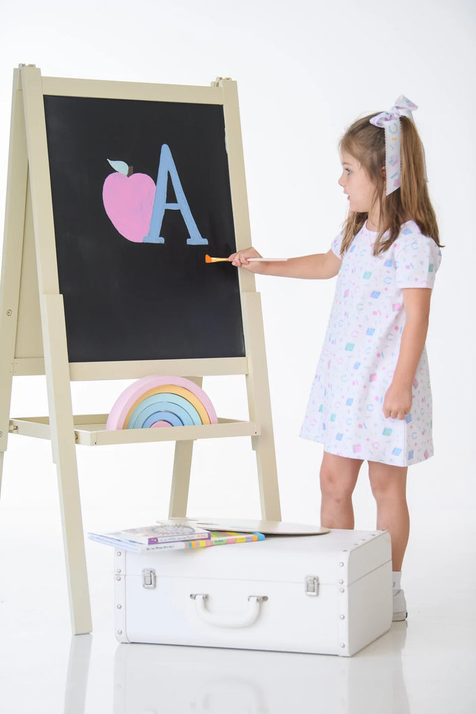 Ivory Stripes of Gray Embroidered Dress (5, 6)