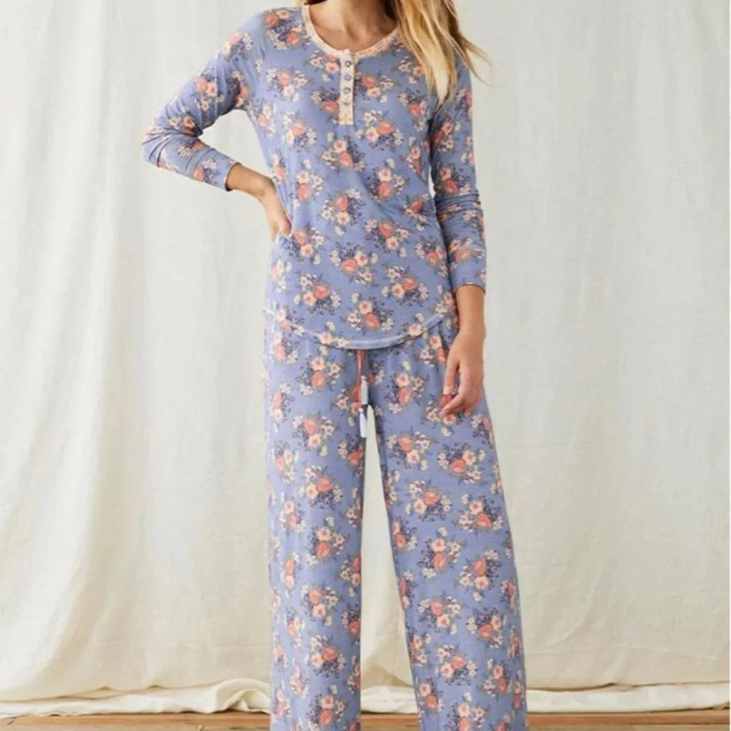 Women | Lounge Wear Bright Blue/white pants set (S)