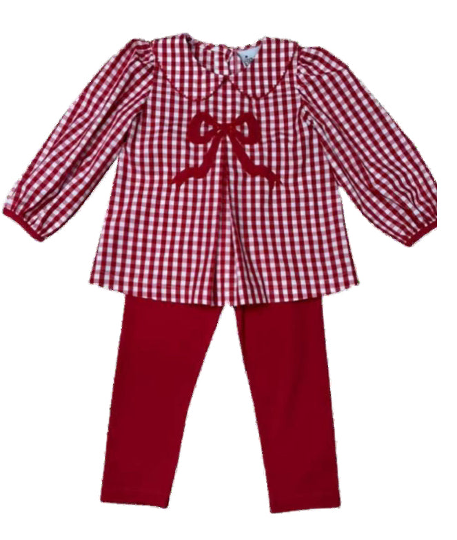 Appliqué Pant Set | Red Bow Checks - 3T is backordered and will ship as soon as it is back in stock.