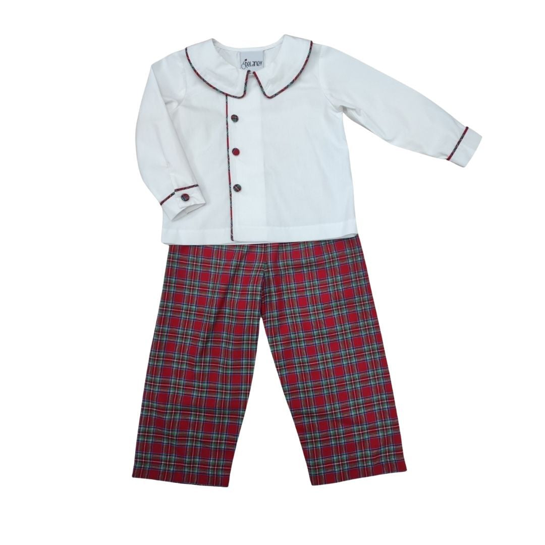 Covered Button Pant Set | Christmas Plaid - 3M is backordered and will ship as soon as it is back in stock.