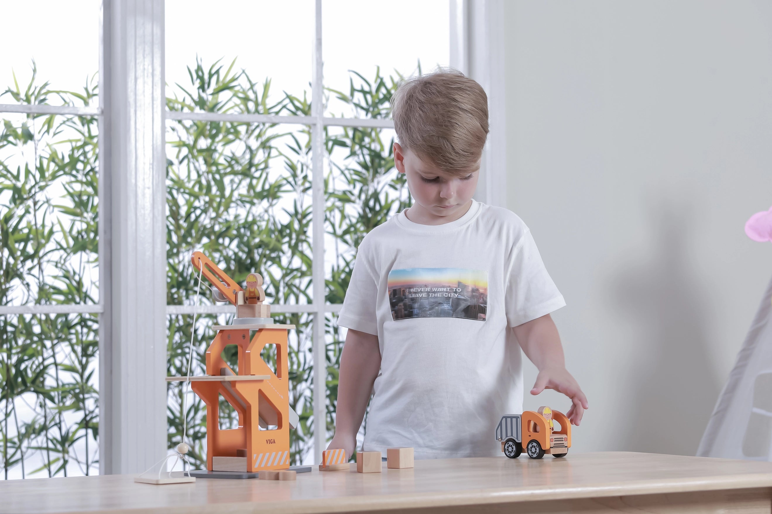 Future builders put their imagination into play when erecting a construction site with this crane set. Let the little planner describe the scene while setting up each piece. This will open up a new world of role playing.