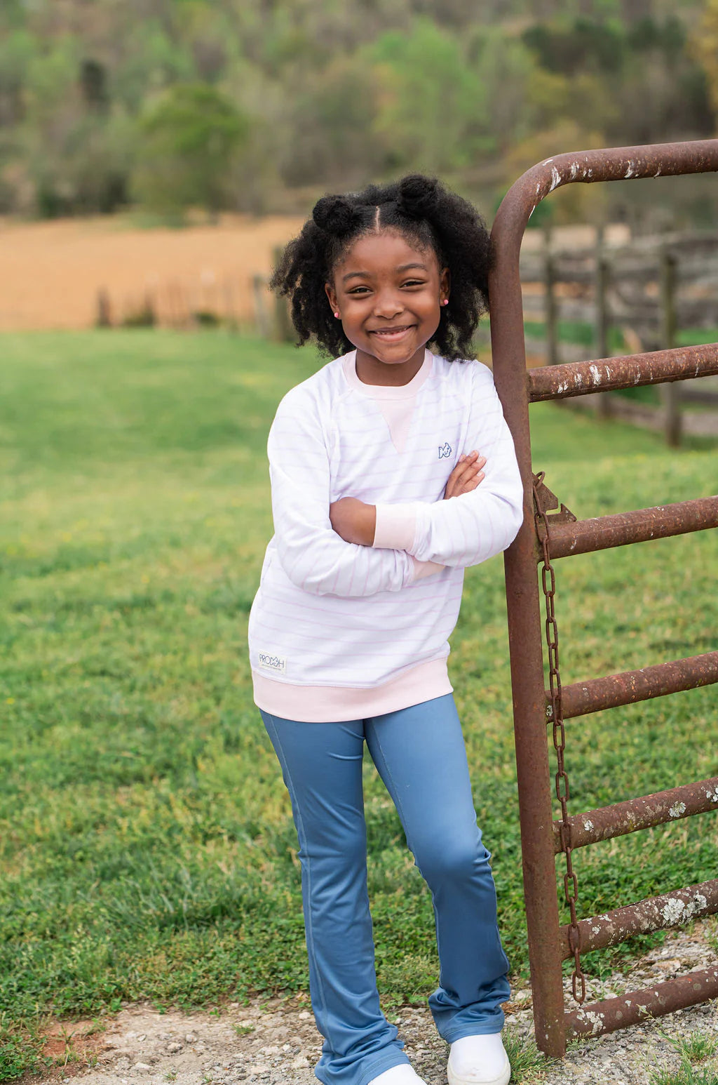 Keep her cozy and polished in our Girls Crew Control Sweatshirt in Pink Tulle Stripe. Designed for school days, playdates, and picture perfect moments, this versatile pullover features super soft, lightweight cotton French Terry fabric. Layer over a t-shirt or pair with our new girls joggers. Plus, it's proudly made in Peru, known for its high-quality cotton production.