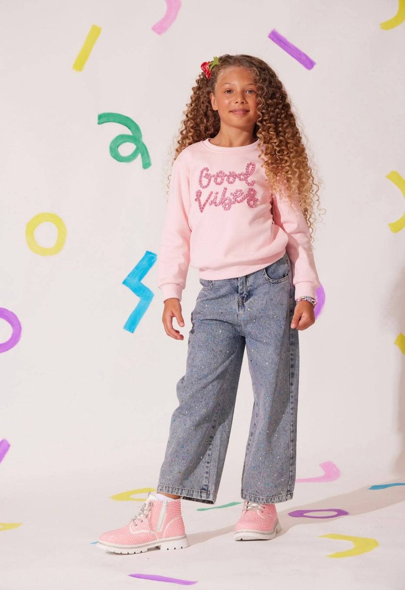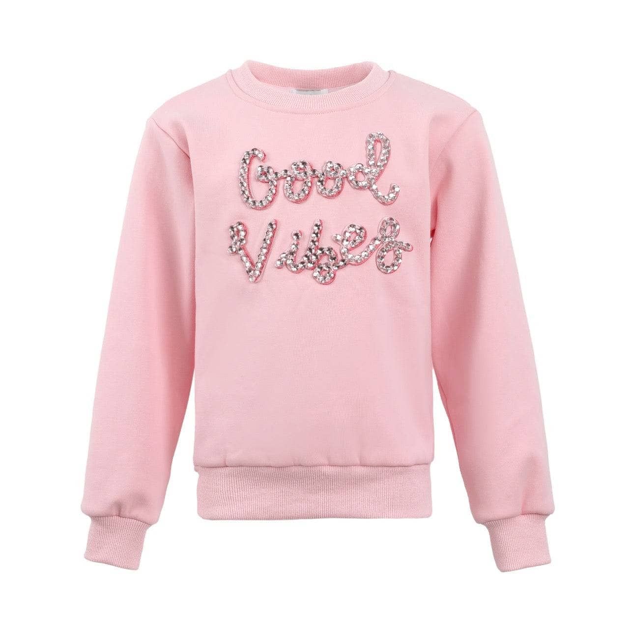 - Trendy and eye-catching sweatshirt featuring a bold “Good Vibes” sequin design for added sparkle and charm.