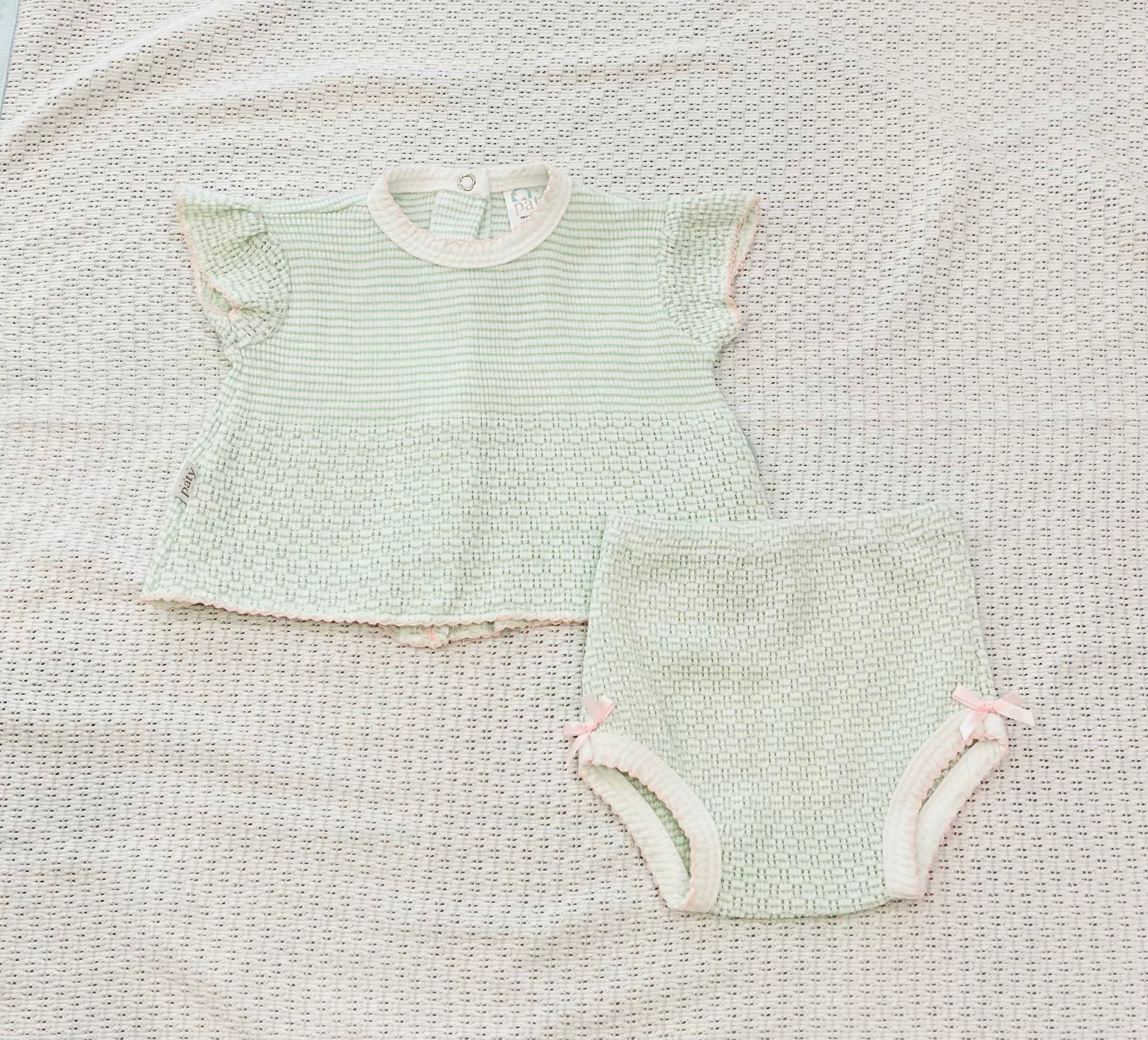Paty Pinstripe signature, 50/50 blend, Paty knit accented in colored picot trim.