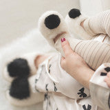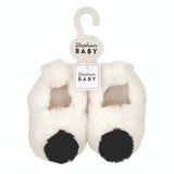 Keep your baby's tiny toes warm and stylish with Ivory Plush Slipper featuring adorable black pom poms! Designed to keep little feet cozy, these charming slippers are perfect for moments at home and playful outings. Ideal for babies in the non-walking stage, ages 0-9 months.