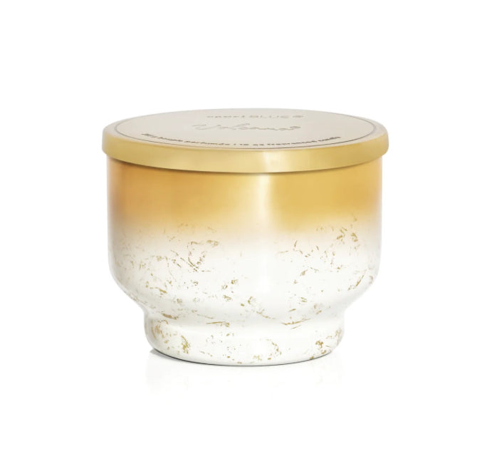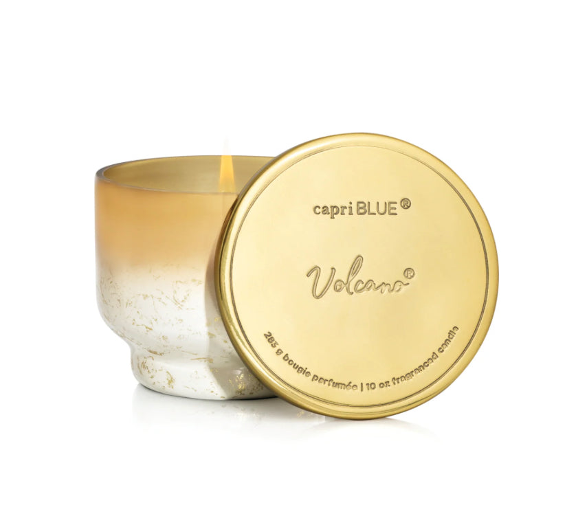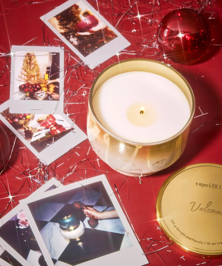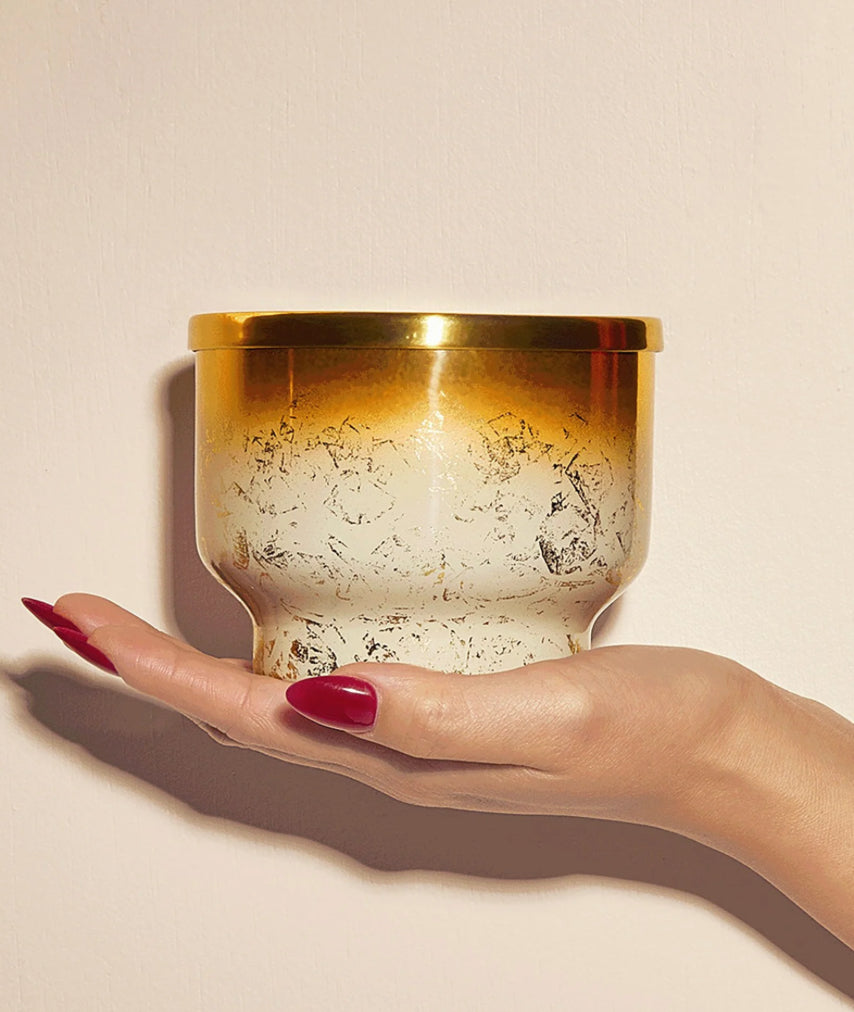 Enjoy our iconic fragrance, Volcano, in our Glimmer Inverted Candle. Its elegant white and gold finish, with notes of tropical fruits and sugared citrus is the way to make your holiday dreams come true!