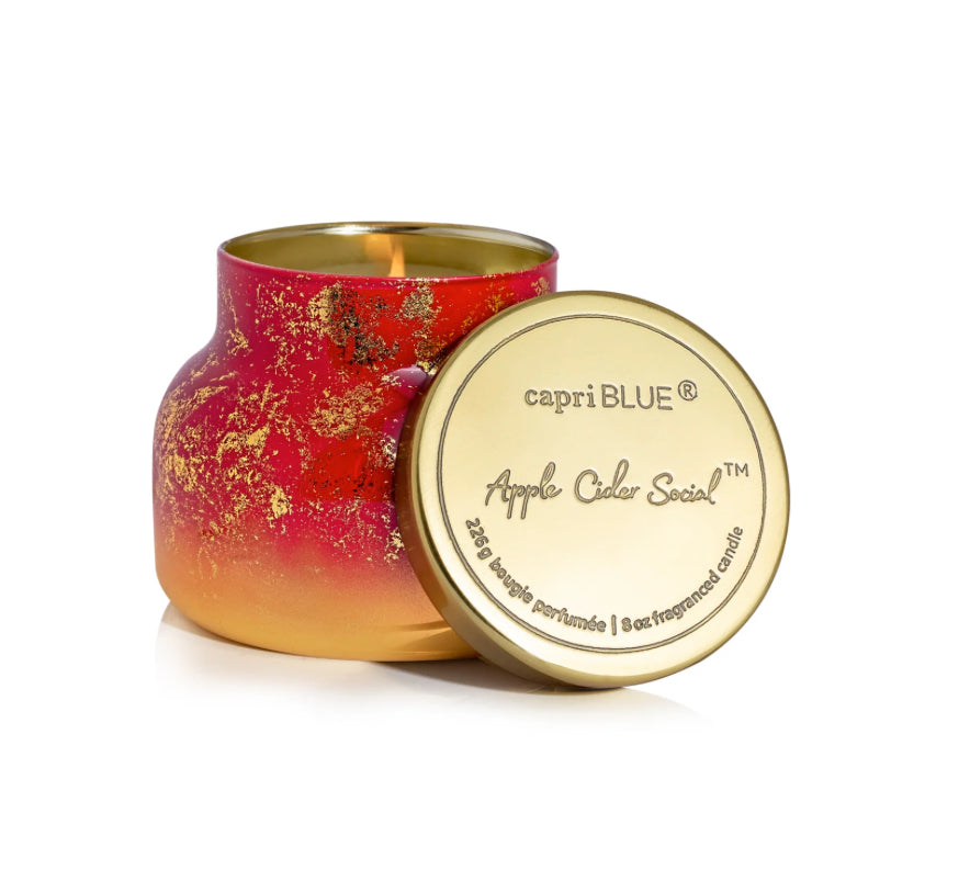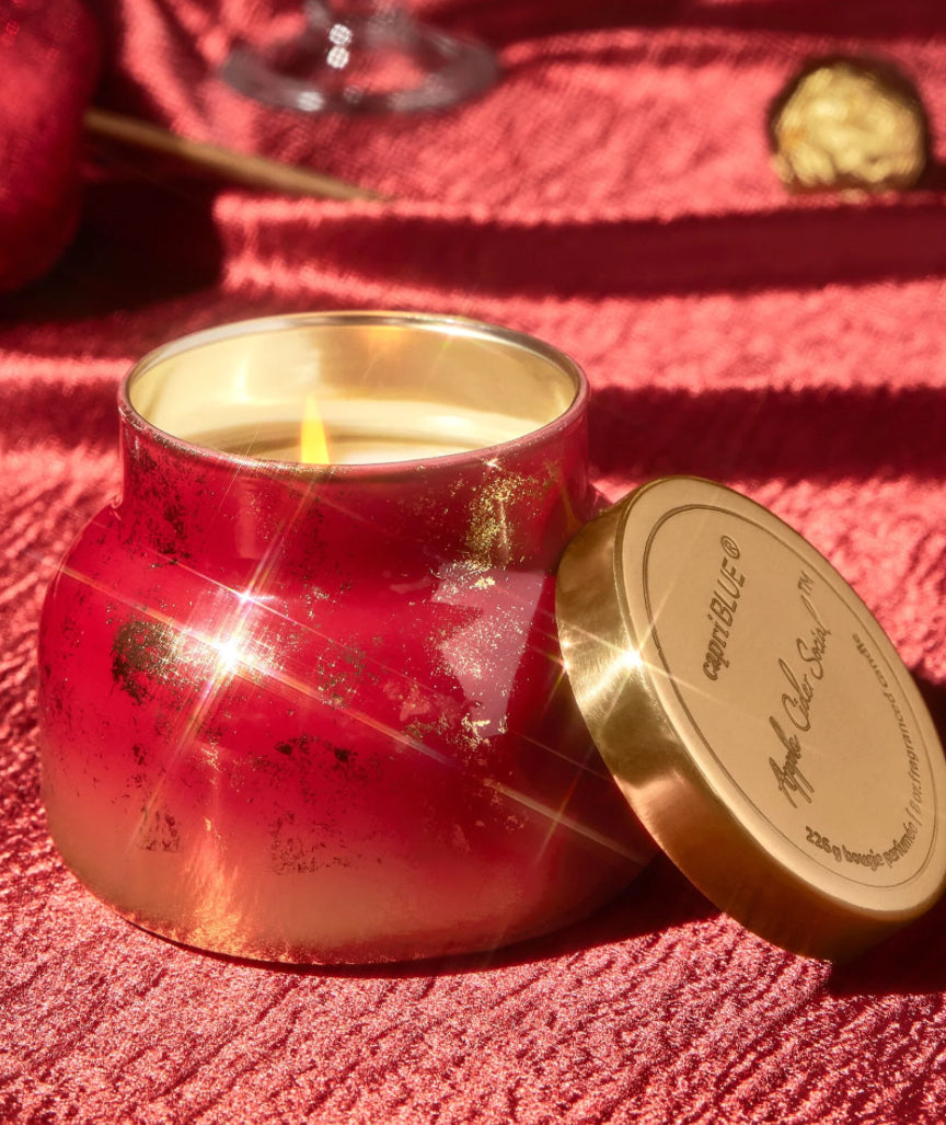 Glimmer your way through the chilly fall days with our Apple Cider Social Glimmer Petite Candle! Featuring a stunning cranberry red and metallic foil finish, this candle will give you all the cozy fall feels. Fill your space with delicious notes of crisp apple, cinnamon, juicy pear with grated clove and fresh nutmeg.