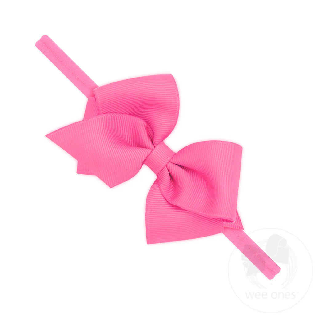 Tiny, delicate styles to start her very first bow collection! Wee Ones Baby and Toddler classic Grosgrain Bows complete with a matching 1/4" comfortable nylon band. Sure to stay put with One Size Fits Most sizing over 3 months.