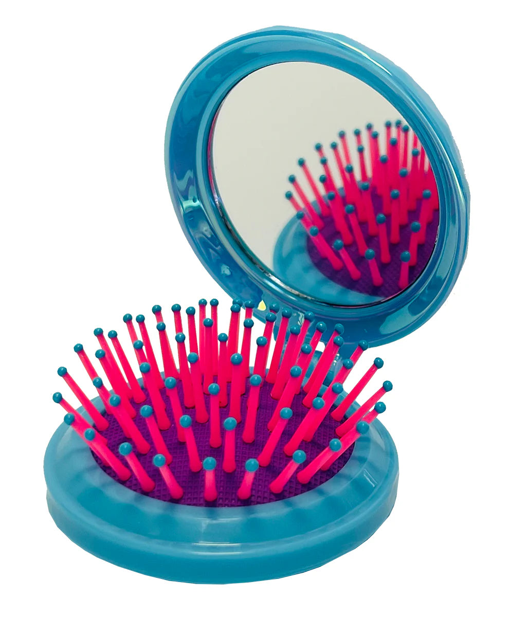 Add some sparkle to your hair care routine with the Jeweled Mirror Hair Brush! The jewel exterior is not only eye-catching, but also functional with a mirror and brush on the inside. Its compact and foldable design makes it perfect for on-the-go touch-ups. Shine on anywhere you go with this gem of a hair brush.