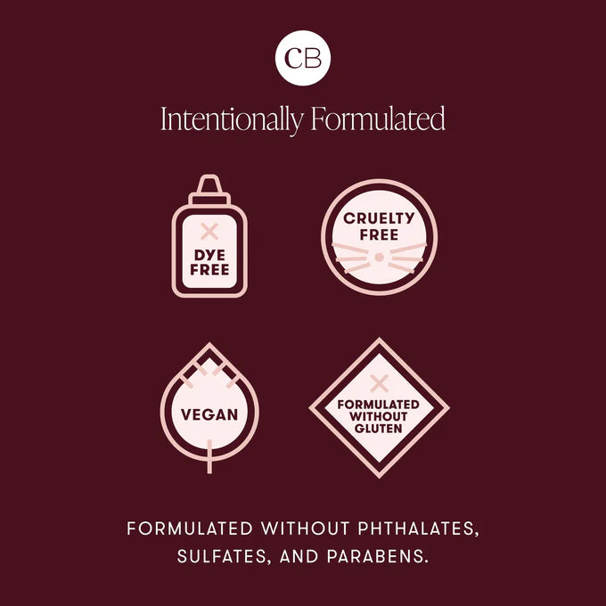 Vegan formula. Cruelty-free. Formulated without gluten, parabens, sulfates, and phthalates. No synthetic color.