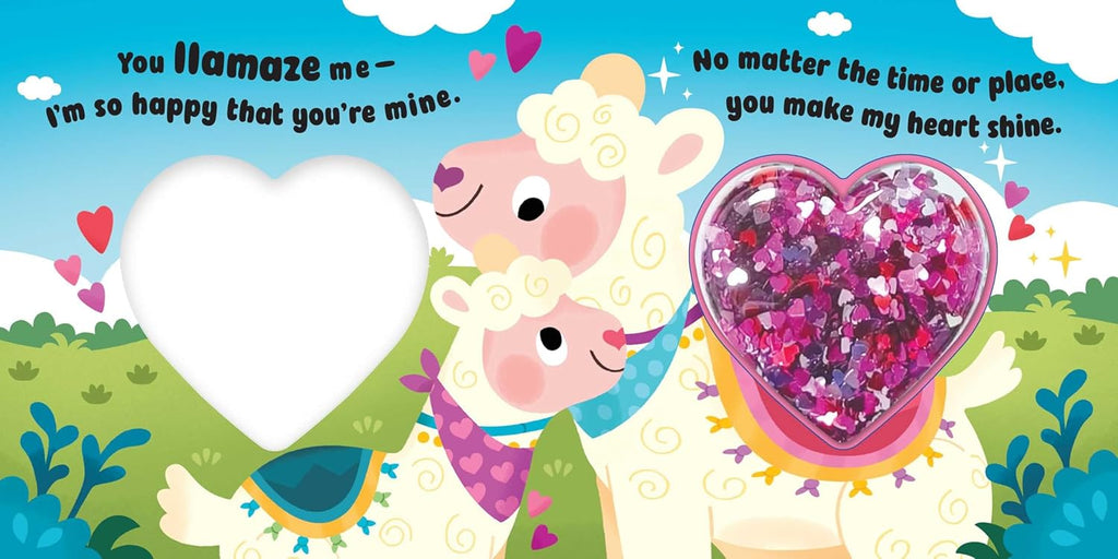 Parents and children alike will love the sweet, rhyming story full of adorable animal puns in I Love You Alotl. This board book features a plastic heart full of pink and red heart sequins that little ones can shake and move on every page for hands-on story time. Bright illustrations featuring adorable llamas, sloths, axolotls, and more, paired with heartfelt text sprinkled with lovey-dovey puns, are sure to make this sparkly interactive book a favorite read at bedtime or anytime!