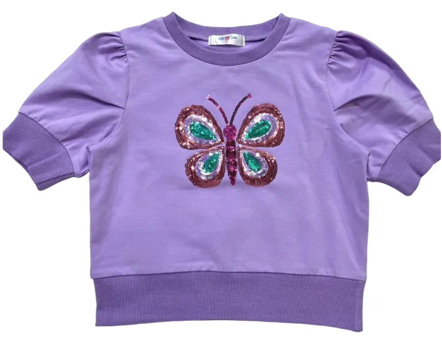 Lily Puff Sleeve Tee | Sequin Butterflies, Lavender - 3T is backordered and will ship as soon as it is back in stock.