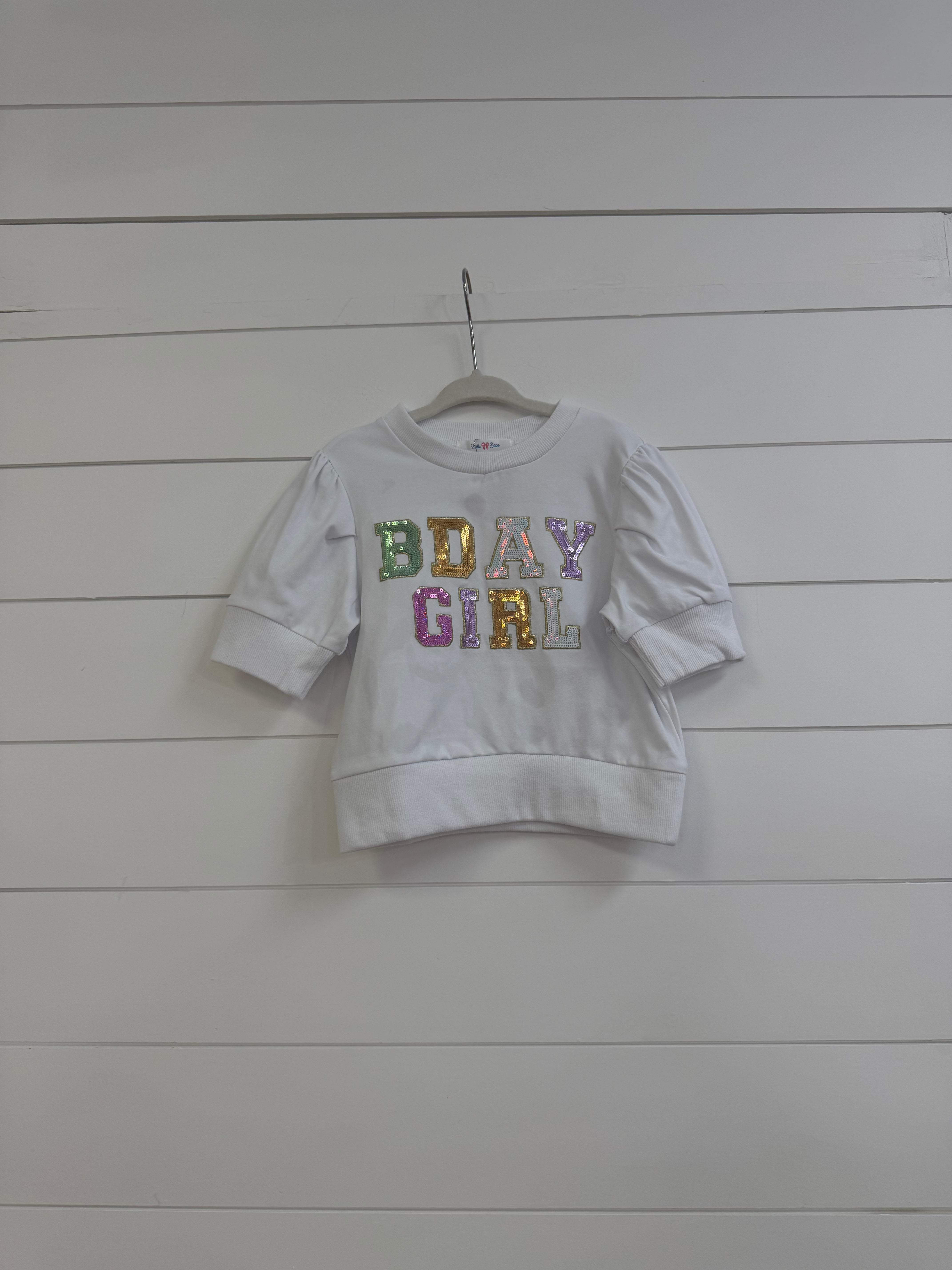 Lily Puff Sleeve Tee | Birthday Girl, White - 4T is backordered and will ship as soon as it is back in stock.