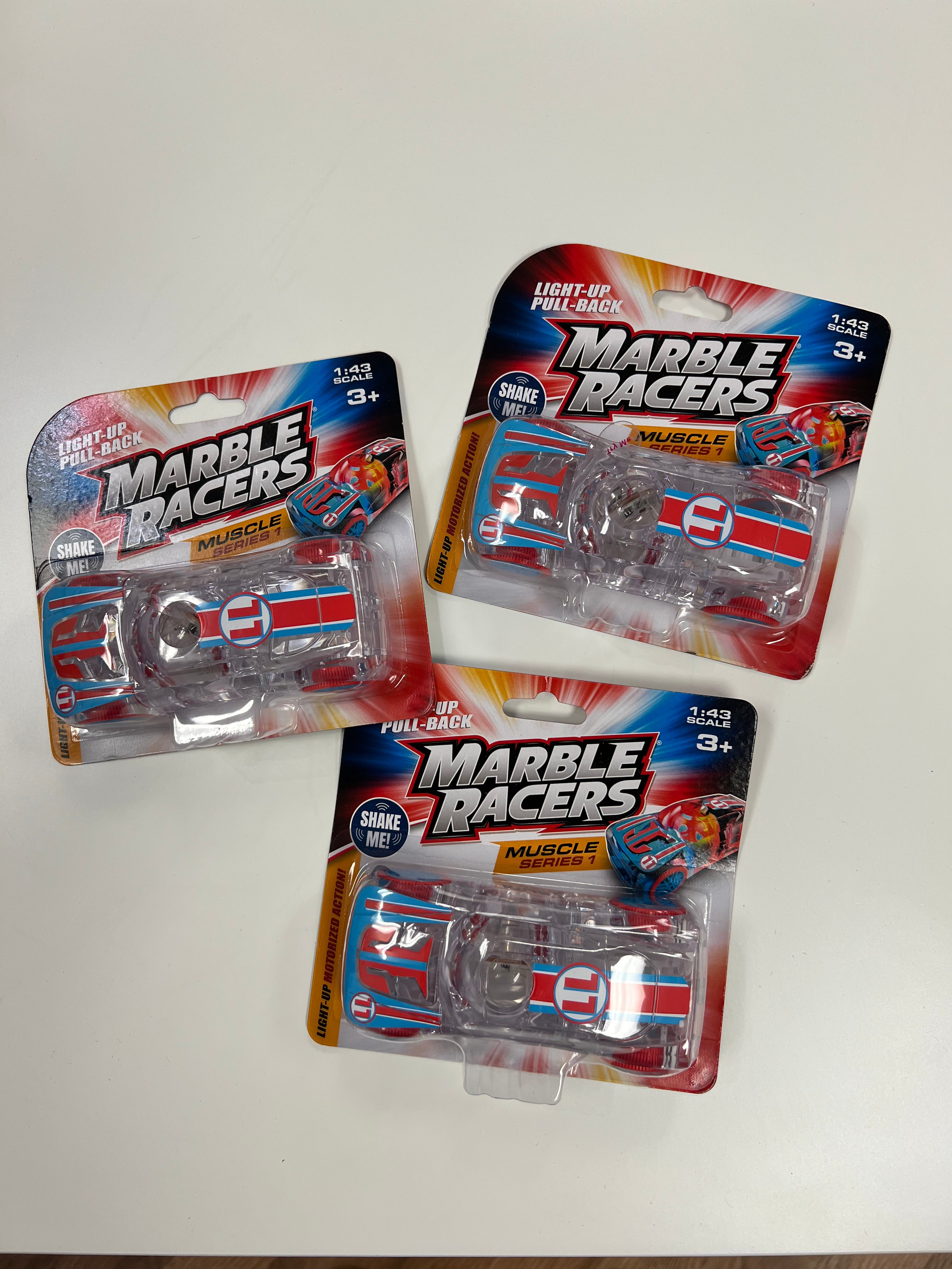 The coolest pull-back engine racer ever with Marble Racers light-up pull-back racing cars! Marble Racers utilize Motion Activated LED lights to bring the coolest blink and flicker light action to your child's racing car / truck playtime. Cars / Trucks feature an interior marble with the motion-activated LED light inside - give it a shake and the red, blue, green and purple lights flicker and flash as the marble spins!