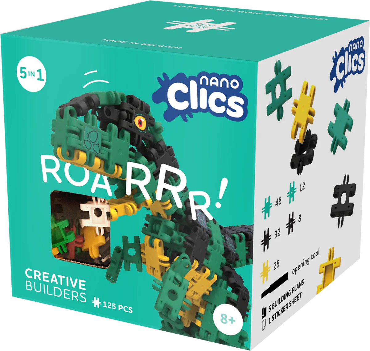 EDUCATIONAL TOYS - The plug-in game of Nano Clics promotes your child's creativity and motor skills. With Nano Clics we also introduce a new cube with a hole in the middle. This allows you to build even more detailed than ever before!
