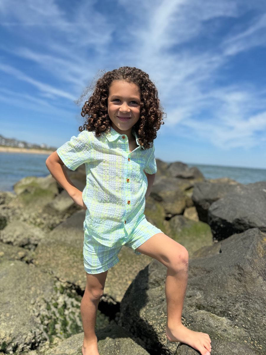 Newport Woven Shirt | Green & Neon Plaid - 12-18M is backordered and will ship as soon as it is back in stock.