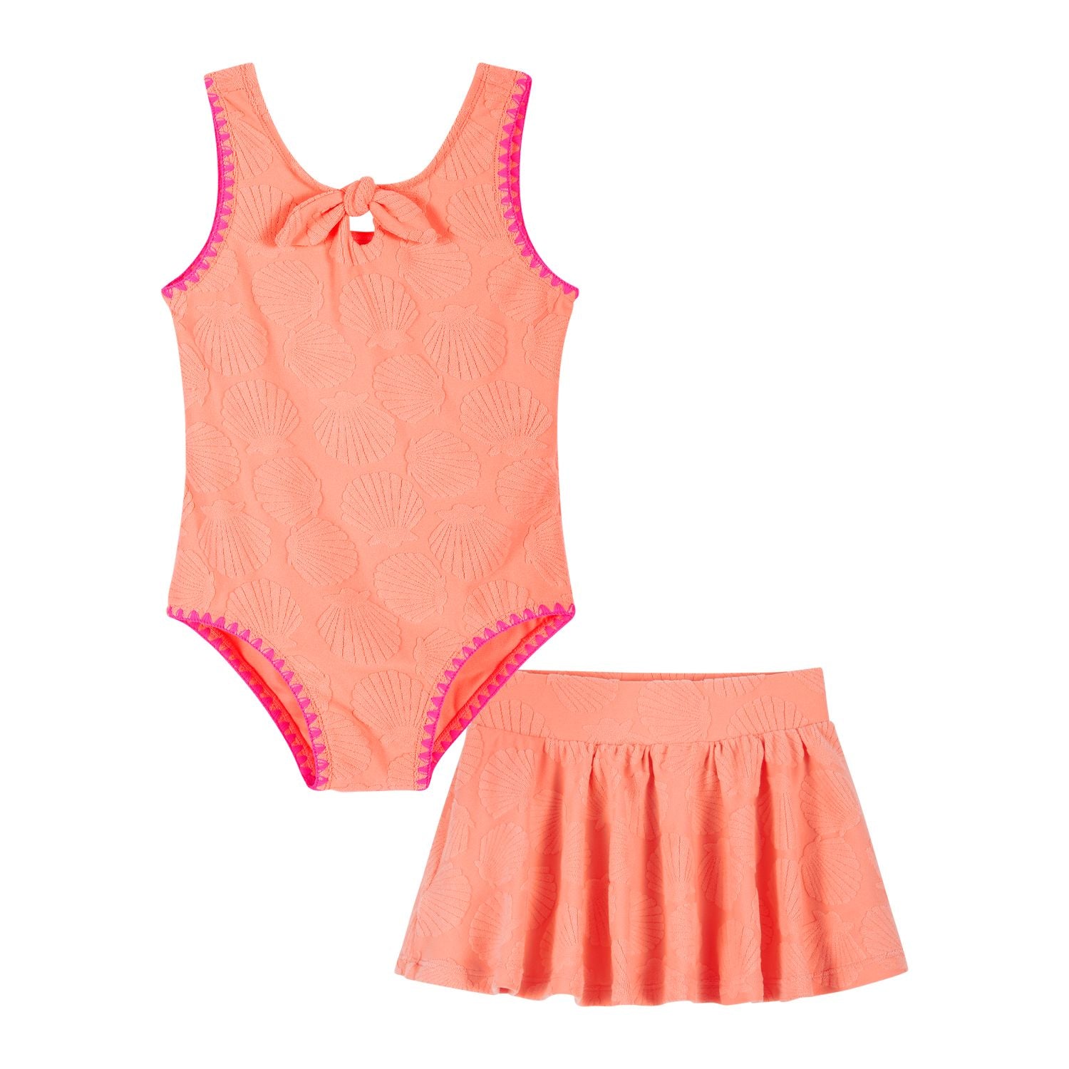 One Piece Skirt Set | Coral Terry - 2T is backordered and will ship as soon as it is back in stock.