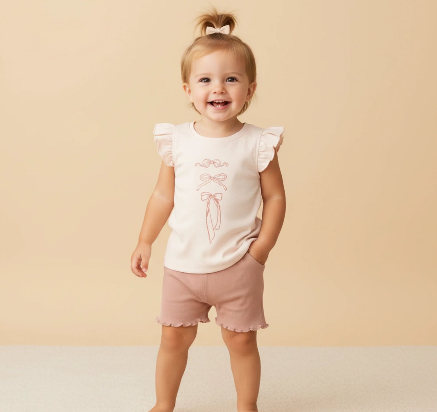 Organic Flutter Sleeve Top & Short Set | Bows