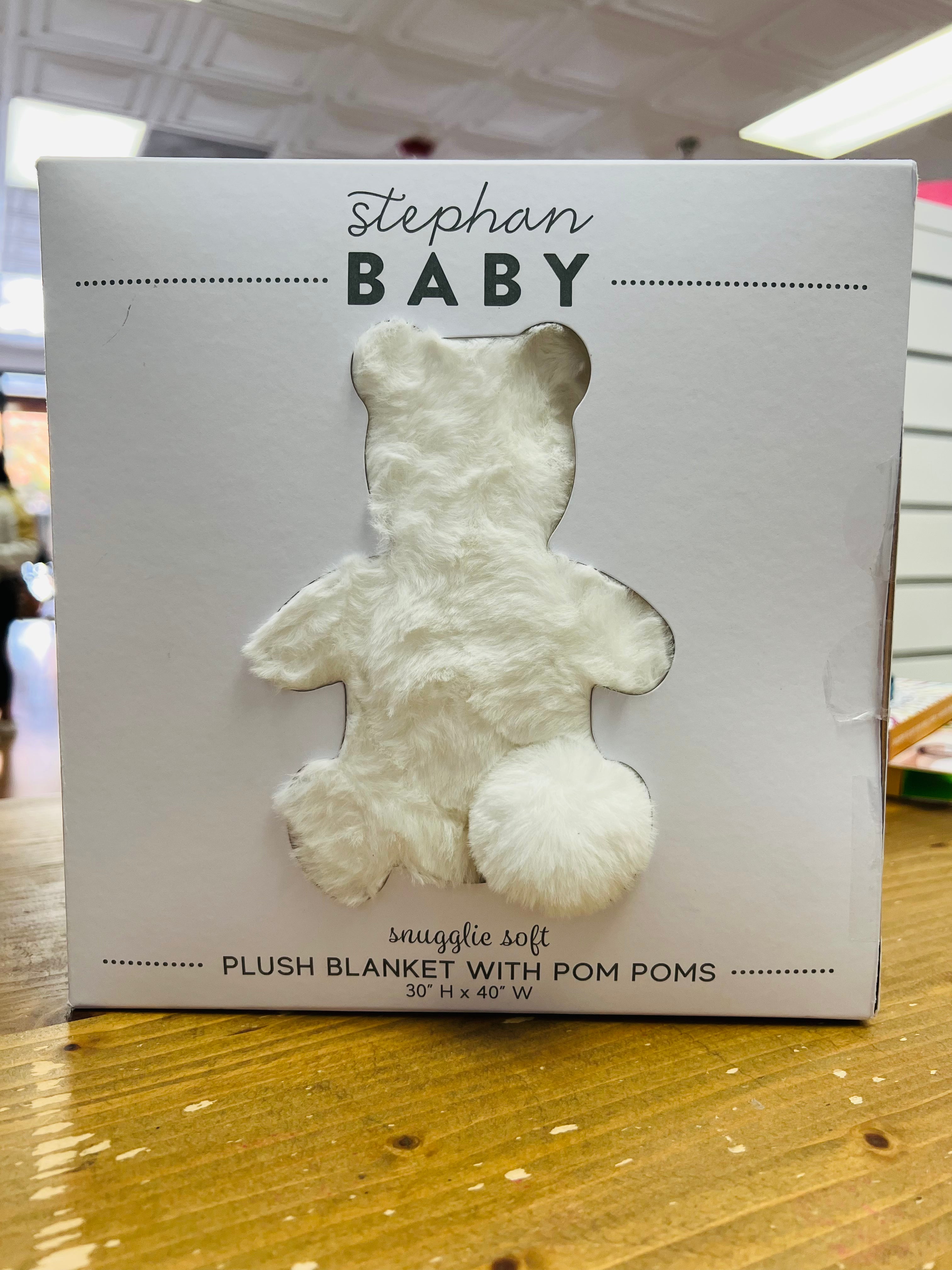Wrap your sweet cuddle bunny in this super soft faux fur blanket. Perfect for keeping baby cozy and warm, this fleece lined plush blanket is extra soft to the touch and features adorable plush pom poms on each corner. Just the right size at 30" x 40" for cold day snuggles, travel, play, or tummy time.