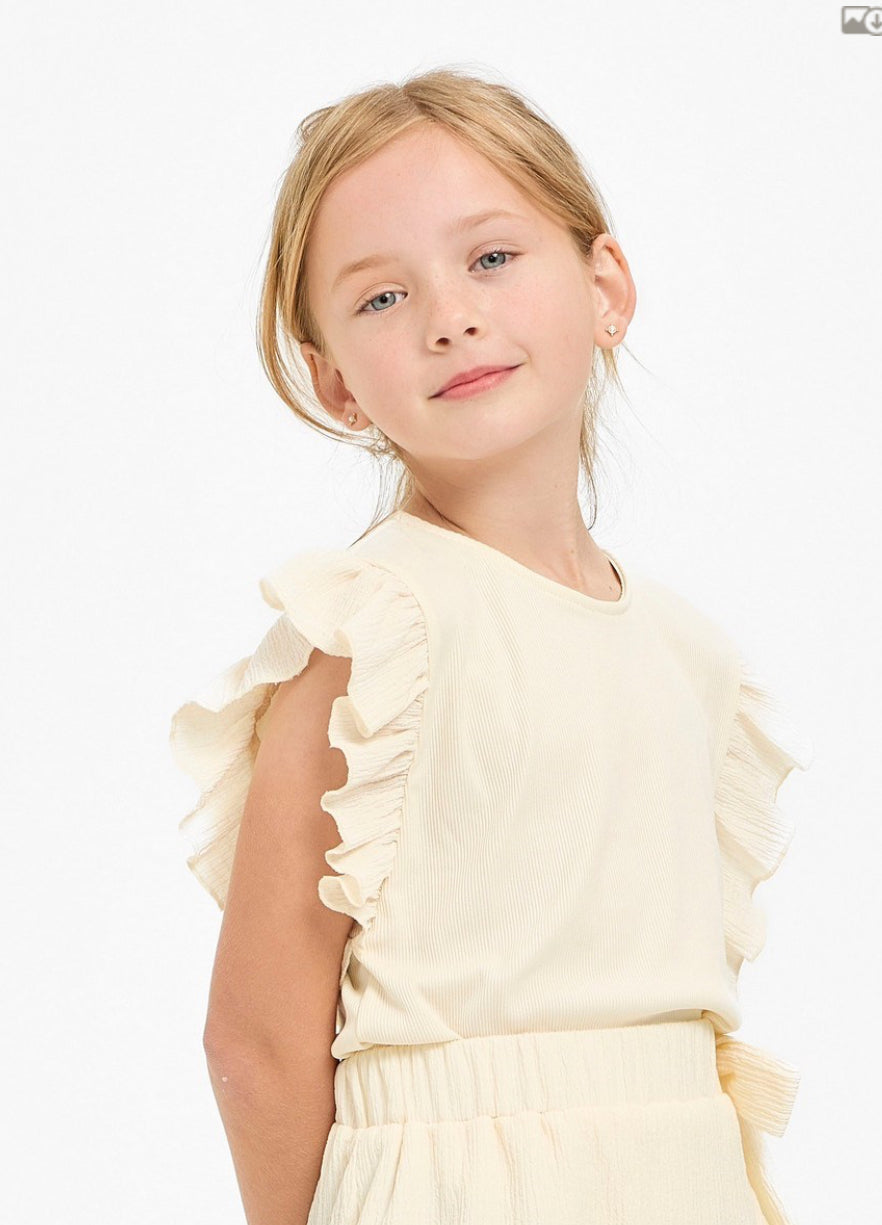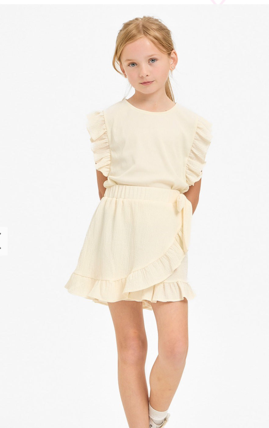 Ruffle Sleeves Ribbed Knit Top and Skort Set