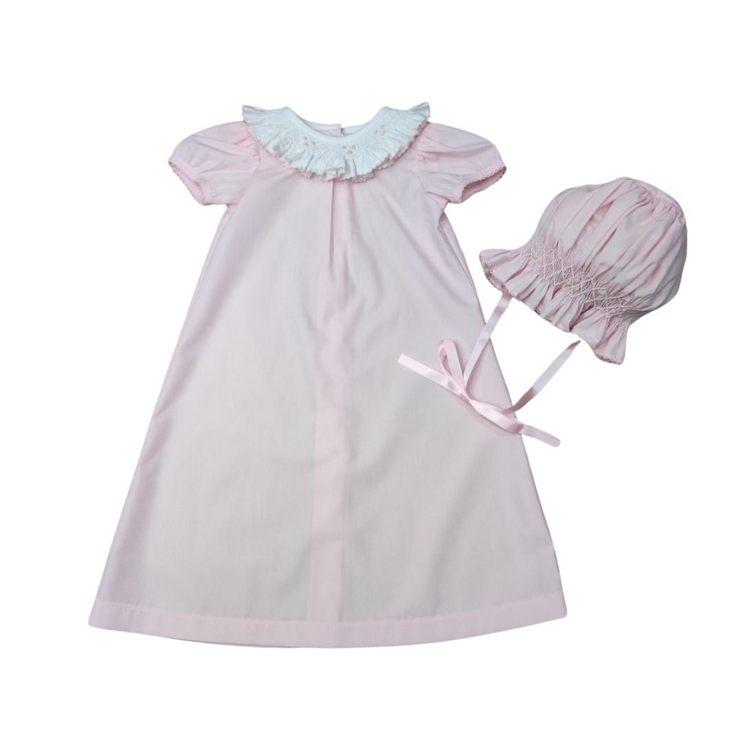 Ruffle Collar Daygown & Bonnet Set | Pink - NB is backordered and will ship as soon as it is back in stock.