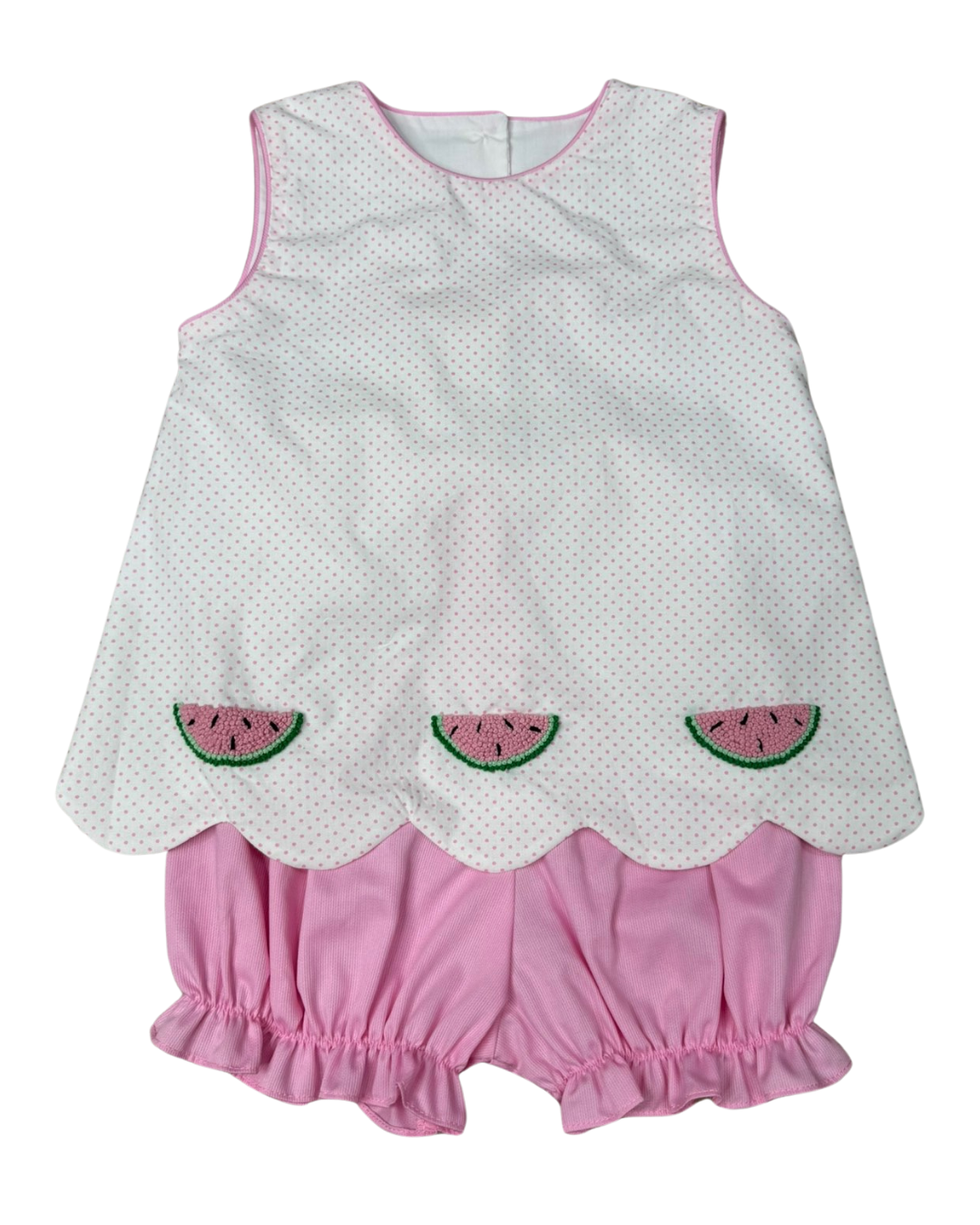 Scallop Bow Back Bloomer Set | Watermelon - 9M is backordered and will ship as soon as it is back in stock.