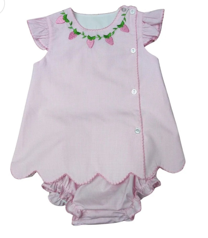 Side Button Bloomer Set | Embroidered Strawberries - 3M is backordered and will ship as soon as it is back in stock.