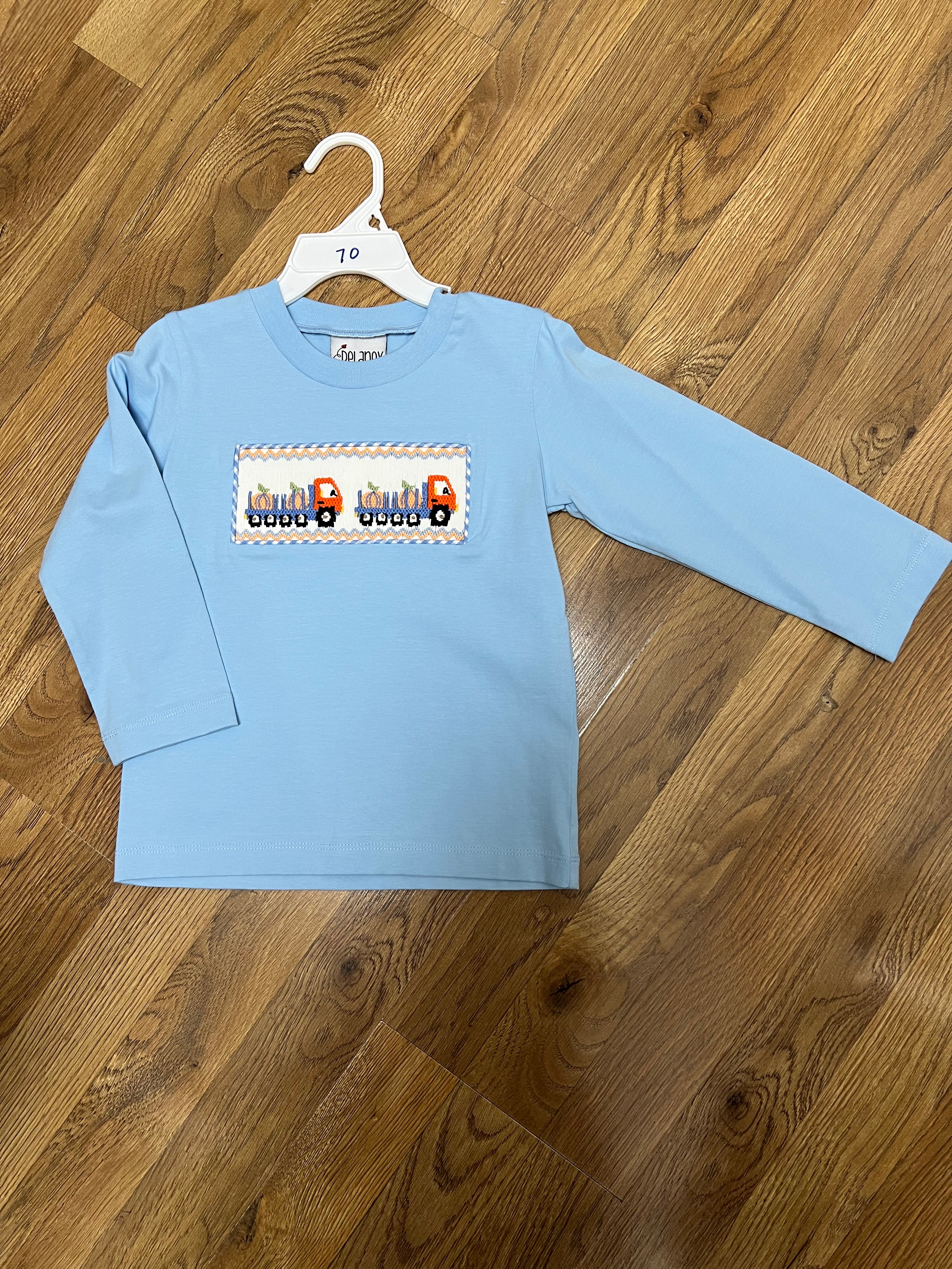 Smock Shirt | Pumpkin Truck - 2T is backordered and will ship as soon as it is back in stock.