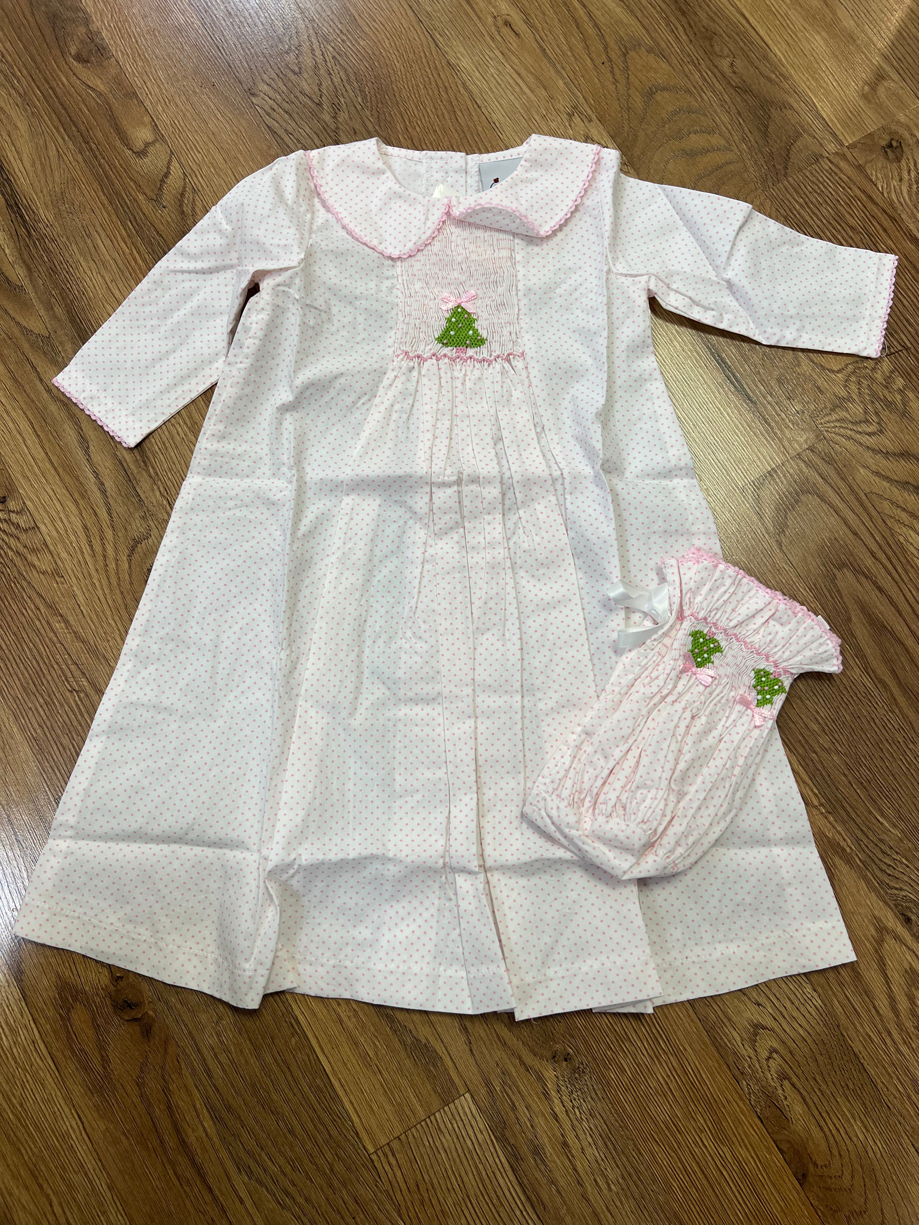 Smocked Daygown & Bonnet | Bitty Dot Tree - NB is backordered and will ship as soon as it is back in stock.