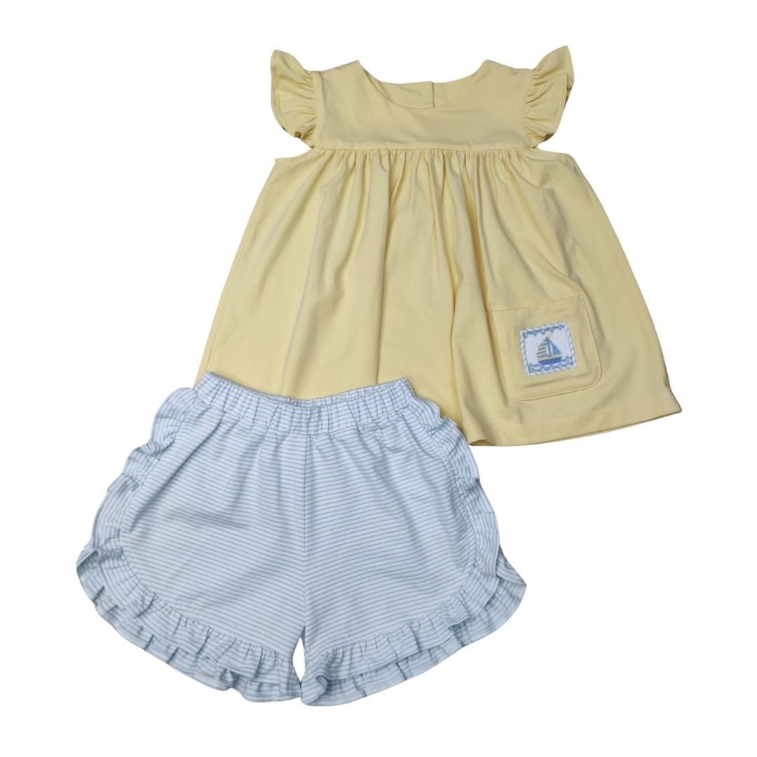 Smocked Pocket Short Set | Sail Away - 24M is backordered and will ship as soon as it is back in stock.