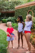 PRODOH Girls Spring Tides Swimsuit in Fireworks Print is a classic swim style for active girls who love adventure and that coastal lifestyle! Pill and fade resistant to last several seasons so you'll be able to pass down to others...keeping your outdoor traditions alive. Share your captured #PRODOHmoments with us on Instagram @prodohkids.