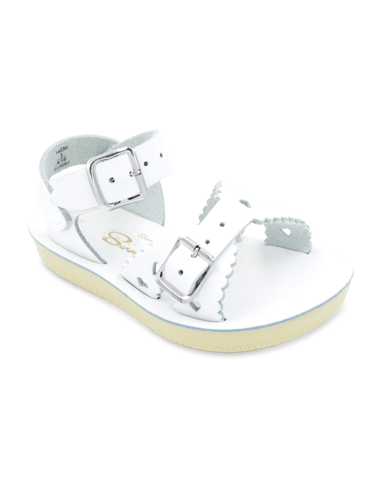 The Sweetheart is a pretty sandal with heart-shaped cut-outs and scalloped edges. It's fully adjustable with a buckled toe and ankle straps. They’re equally as robust as all of our sandals but a lot girlier. As seen on many celebrities kids – the Sweetheart is a very popular choice. The combination of comfort-ability, durability, and fashion make these a wear-anywhere sandal.