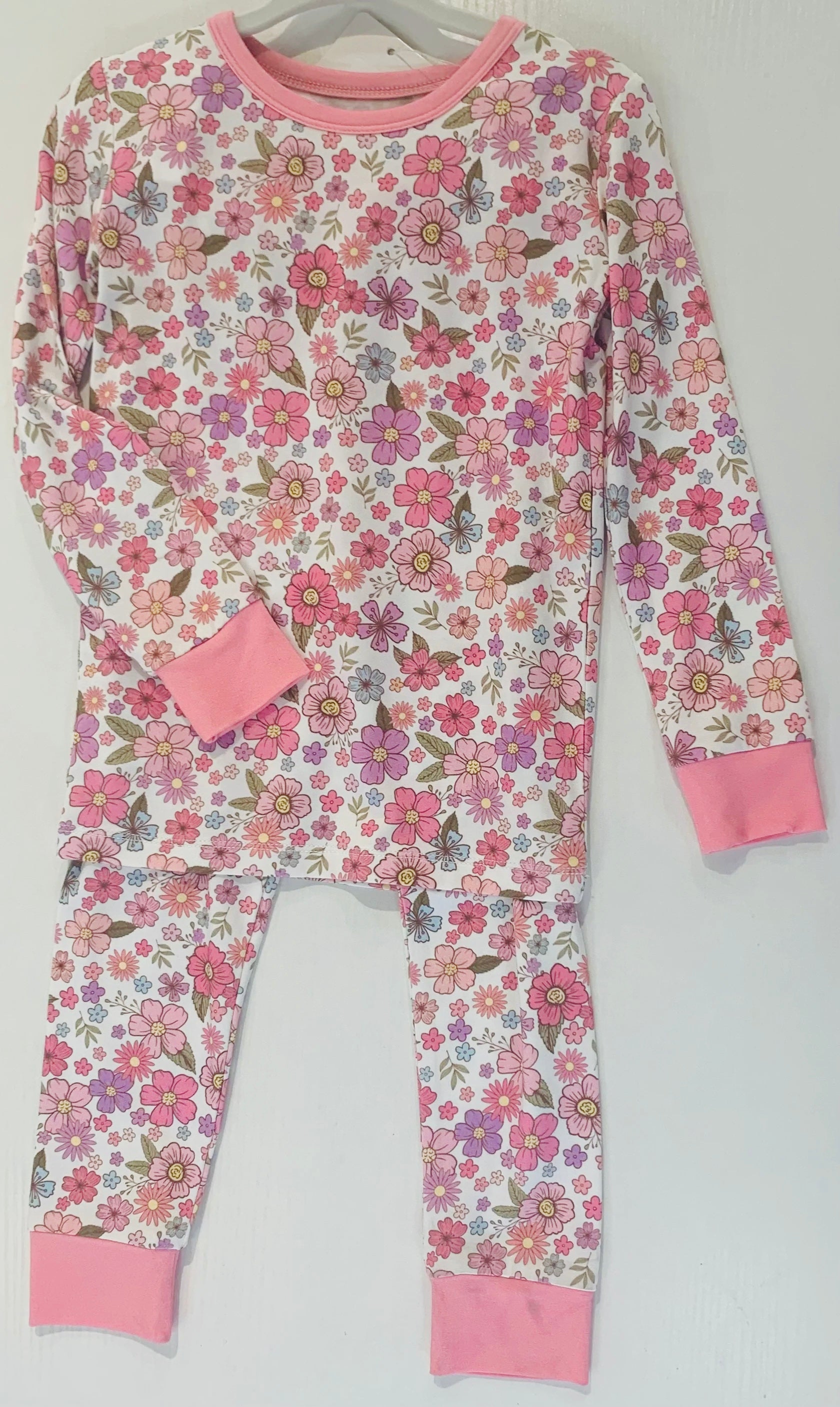 Brighten your child’s day with our Floral 2-Piece Lounger, designed for kids ages 2T to 8. Made from ultra-soft, breathable bamboo fabric, this charming set includes a long-sleeve top and matching pants featuring a delicate floral print. Perfect for playtime, lounging, or casual outings, it combines gentle comfort with fresh, playful style for everyday wear.