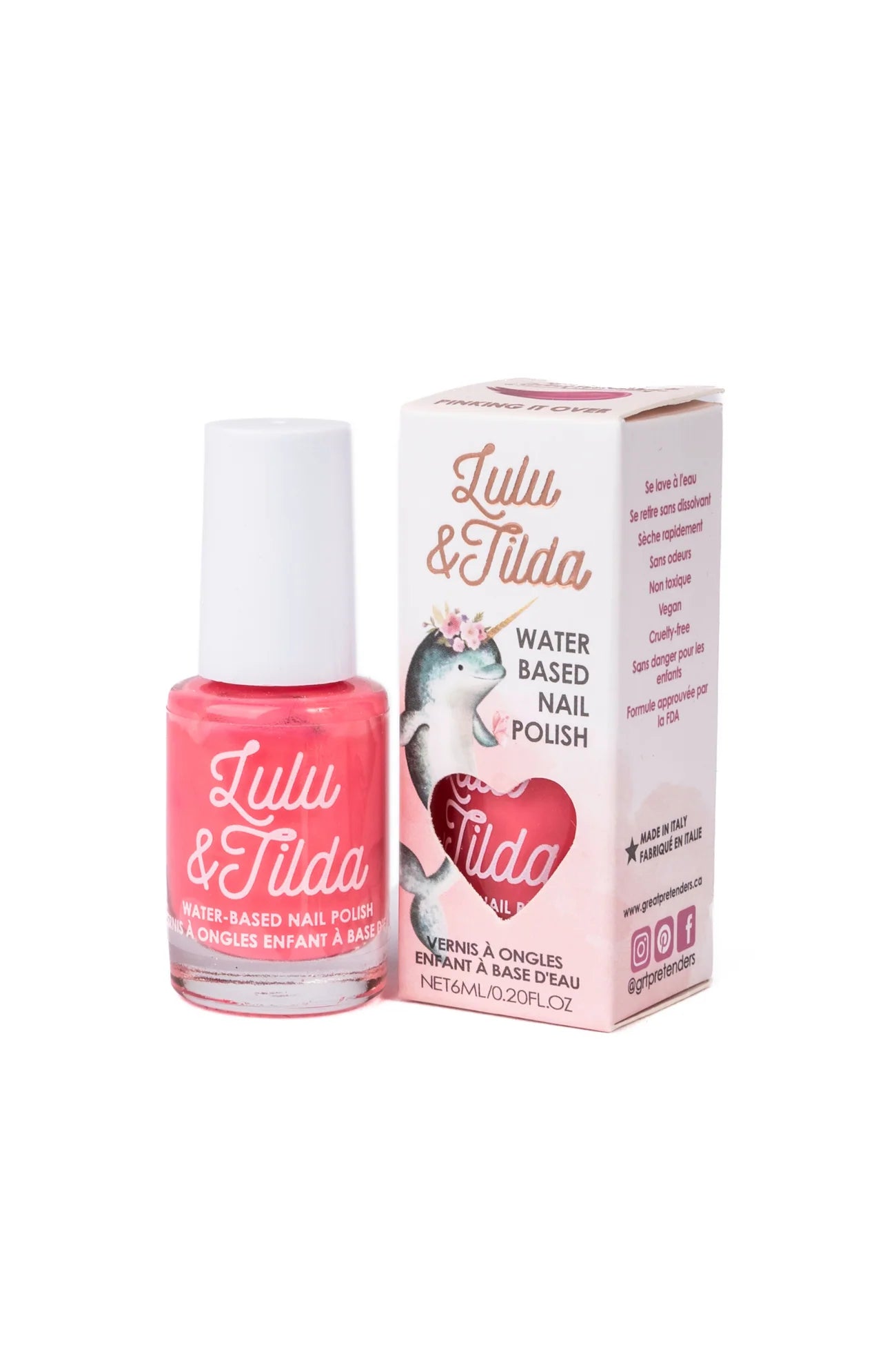 Introducing Lula and Tilda by Great Pretenders – our enchanting new line of kids' washable nail polish! Made in Italy, this delightful range ensures that your little ones can express themselves with the safest, most playful polish on the market. Crafted with your children in mind, each bottle of Lula and Tilda Nail Polish is formulated to be completely non-toxic and vegan. Our water-based solution is free from harsh chemicals, providing parents with peace of mind and offering kids a fun way to play dress-up without any risks.