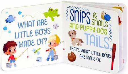 What are little boys made of? Far more than snips, snails, and puppy dog tails! Inspire a generation of unique, wonderful boys with this special story based on the well-known rhyme that moves beyond stereotypes and reminds boys that they are remarkable and absolutely loved. This heartfelt picture book for children ages 3-7 offers sincere encouragement for every little boy to feel confident in who he is and what he loves to do, because he's creative, kind, bold, clever, and full of endless potential!