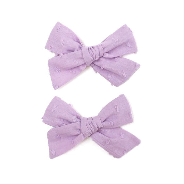 School Girl Piggie Bows are 3" wide and attached to silver alligator style clips. Comes with two bows.
