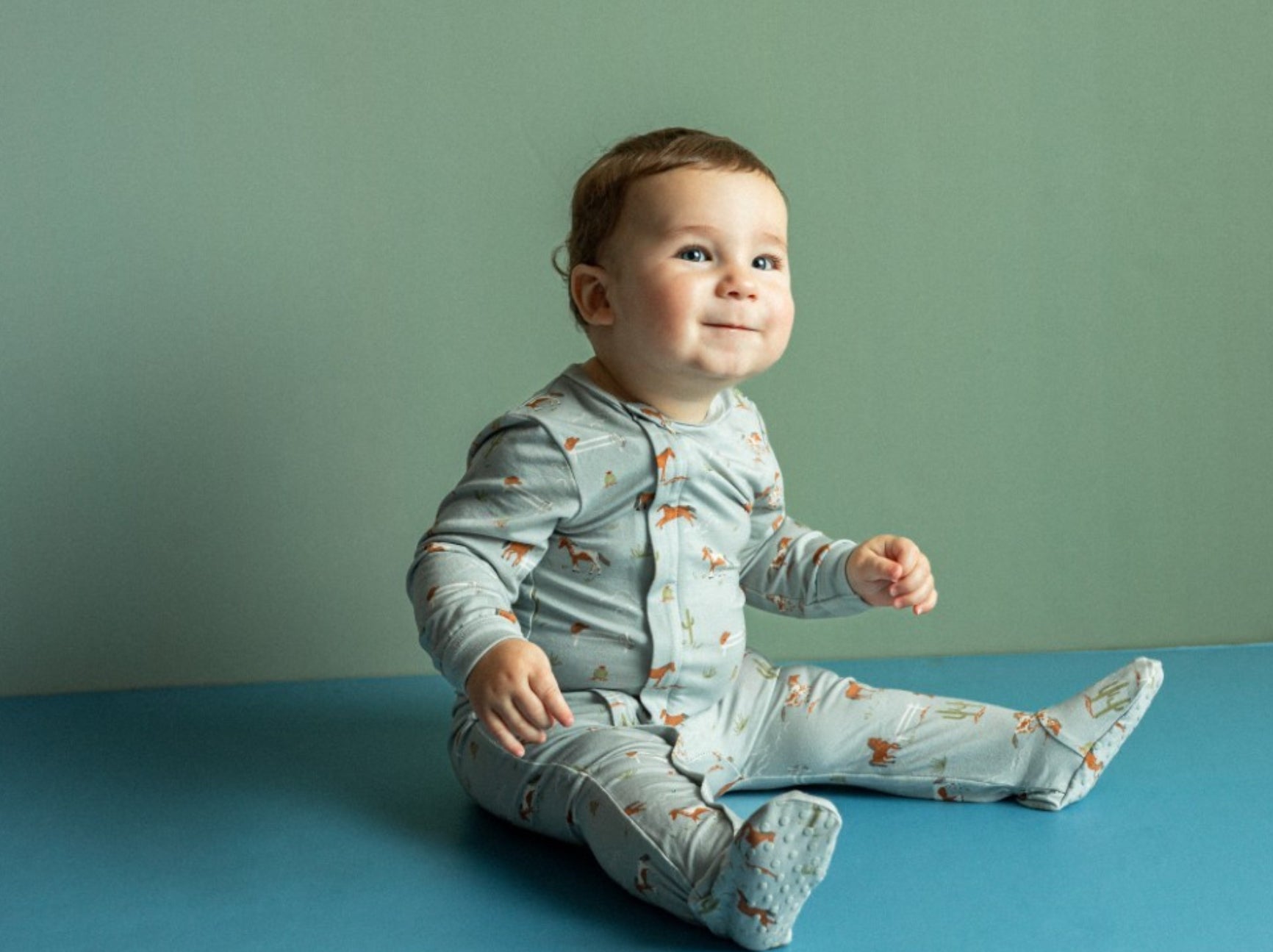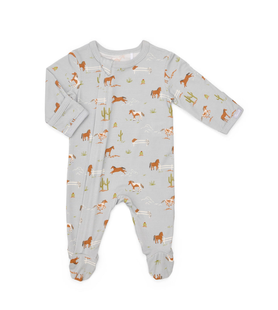 Zipper Footie | Blue w Horses