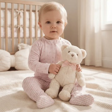 Ask and you shall receive. This yummy footie is equipped with a smooth 2-way zipper, silicone grips on the foot pads and fold-over handcuffs. Plus our silky-soft fabric hugs in all the right places to show off those baby curves.