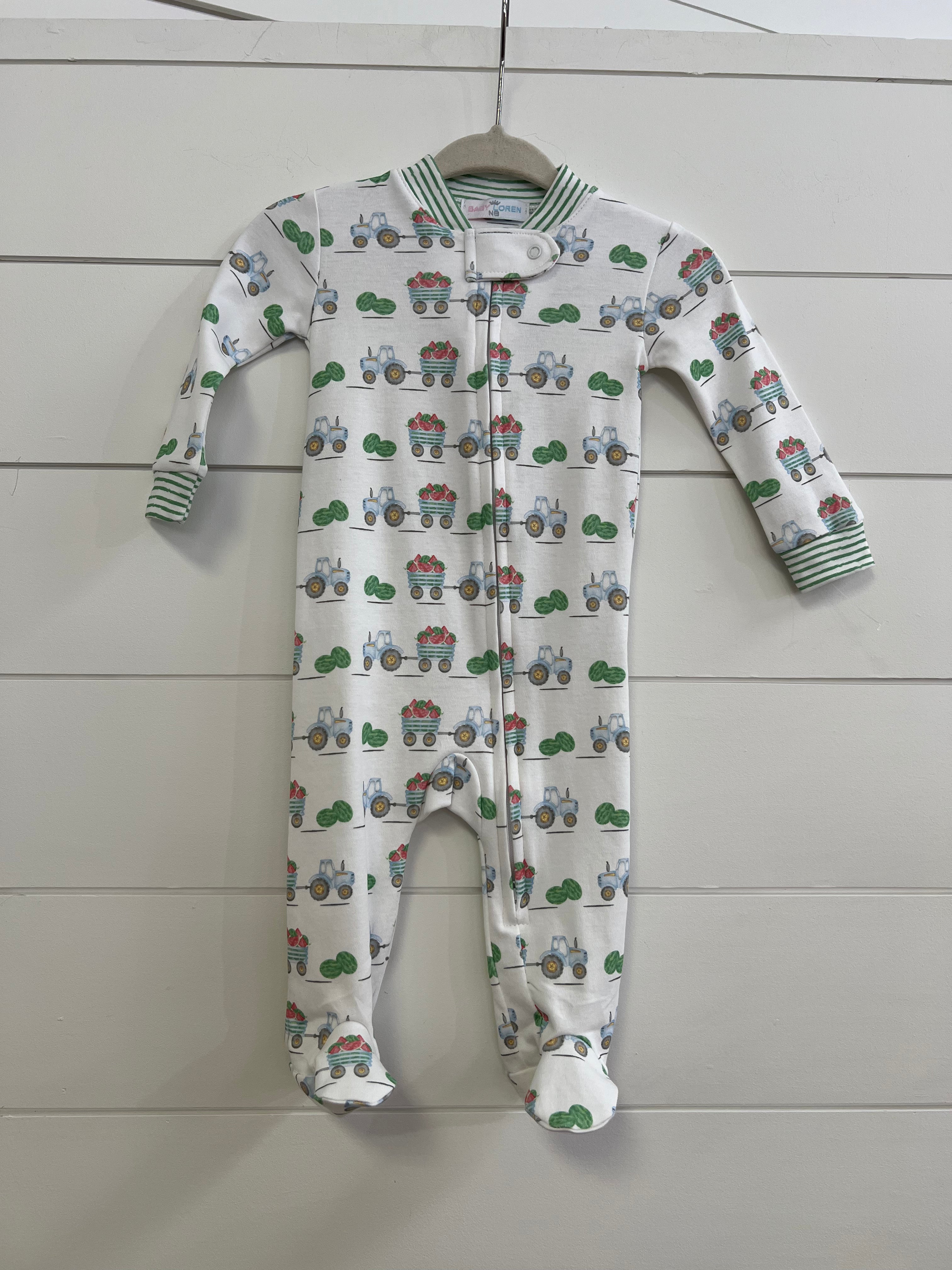 Zipper Footie | Tractors & Melons - NB is backordered and will ship as soon as it is back in stock.
